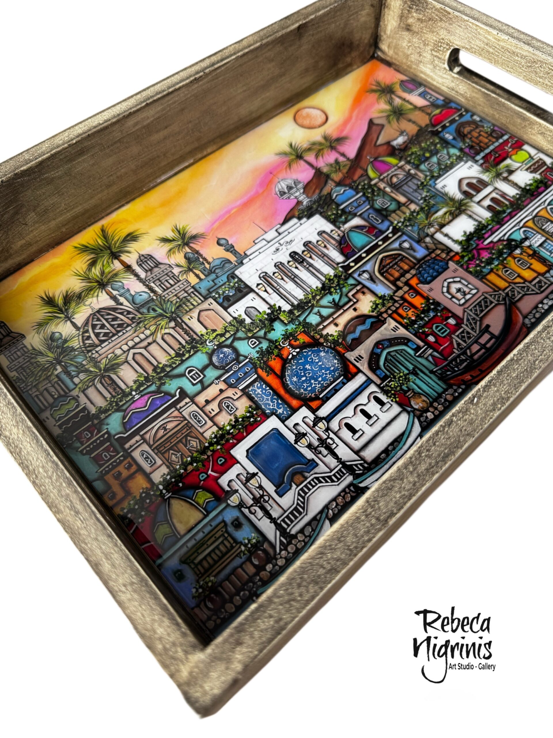 Bring art to your table with this elegant wooden serving tray featuring my signature Oman artwork. Designed to be both functional and decorative, this tray showcases some of my most loved Omani-inspired motifs, turning an everyday object into a small piece of art.