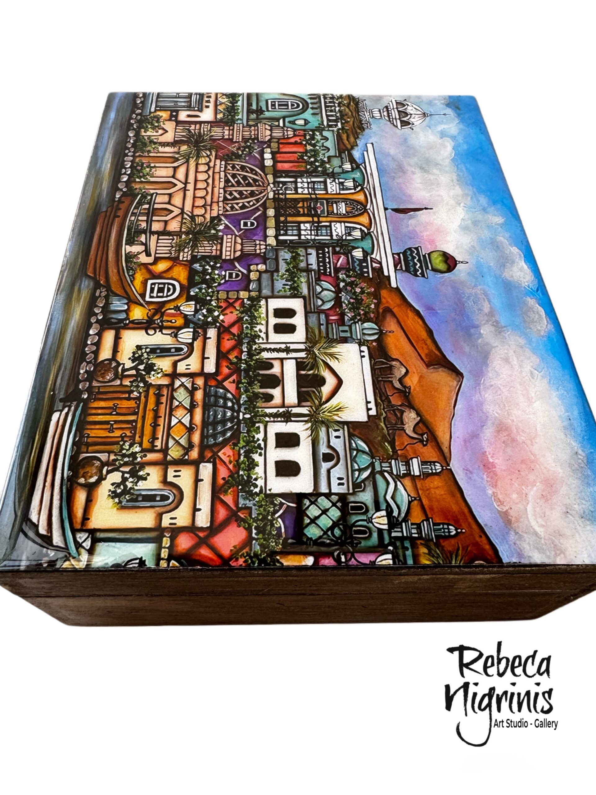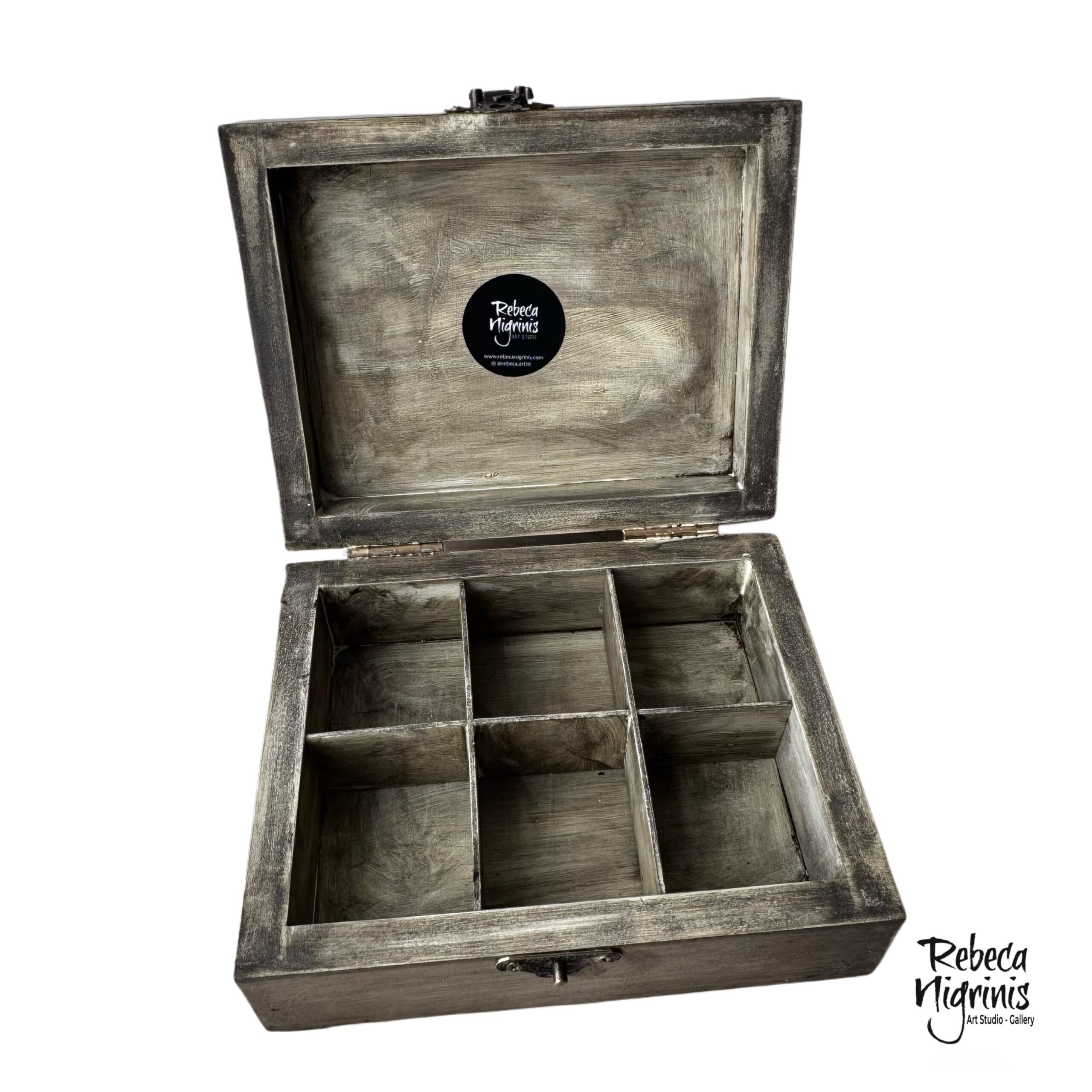 This tea box features original artwork on the lid, sealed with epoxy resin for durability and a smooth, premium finish. Each box showcases a different top design, allowing you to choose from a variety of artworks and make every piece feel unique.